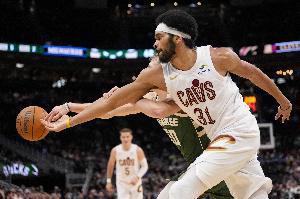 因膝盖腱炎的伤势,贾勒特·阿伦已经缺席了近10场比赛,目前状态仍为大概率出战。