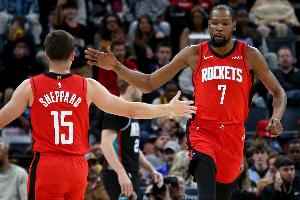 第三节,火箭攻防两端仍占据主动,杜兰特延续火力压制对手反扑,单节火箭29-22净胜尼克斯7分,三节打完握有20分优势。